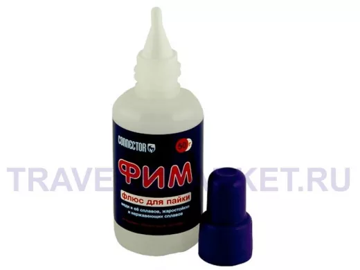 ФИМ - среднеактивный флюс для пайки. Сочетает в себе хорошую смачивающую способность, среднюю активность и умеренную кислотность остатков. Удаление остатков можно производить водой, а лучше специальным средством "Удалитель флюса".