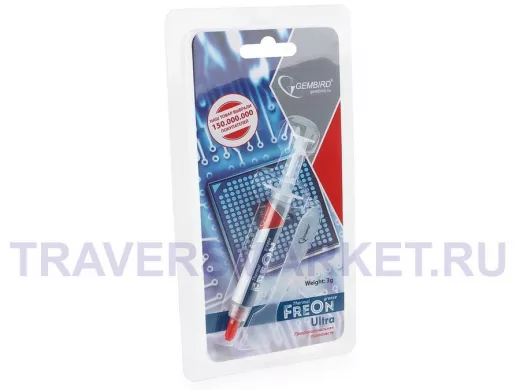 Заказать звонокТермопаста Gembird FreOn Ultra GF-21-3 для радиаторов, 3 г, шприц GF-21-3