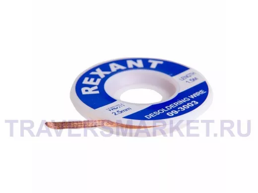 Заказать звонокМедная лента для удаления припоя d=2.5мм. x 1.5М REXANT