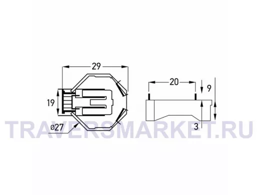 - Габаритные размеры: 25 х 22 х 9мм (подробнее см. схему)