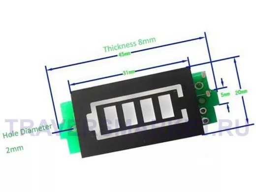 Индикатор заряда Li-ion батареи 2S (7,4В.) 31*20*7 мм.