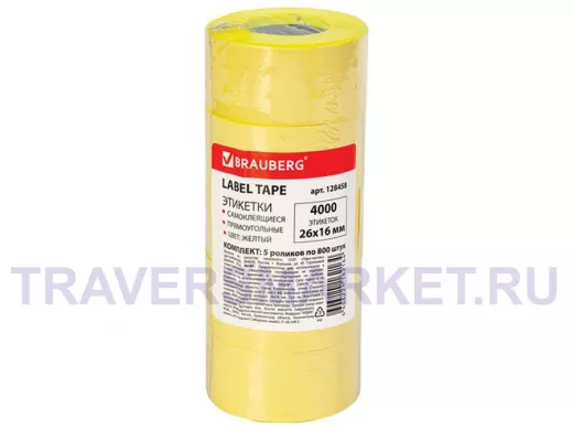 Заказать звонокЭтикет-лента 26*16мм прямоугольная, желтая, КОМПЛЕКТ 5 рулонов по 800 шт. "BR-79138"