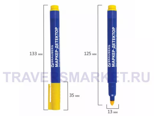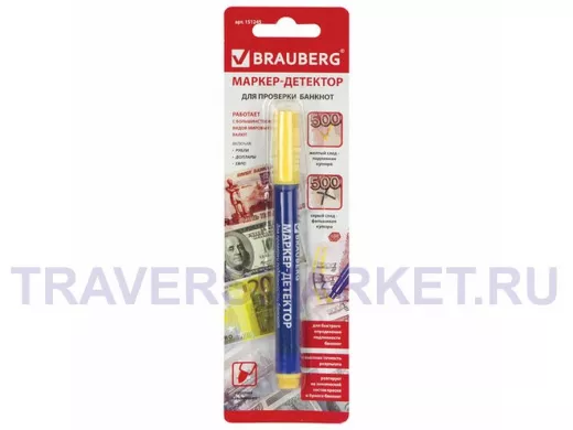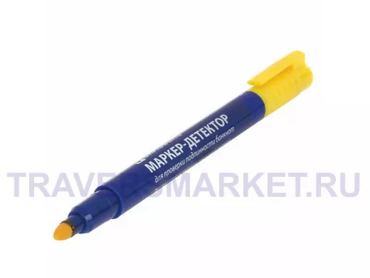 Предназначен для быстрой проверки подлинности банкнот. На проверяемую банкноту необходимо нанести любую метку маркером. Если метка приобретет светло-желтый оттенок - купюра подлинная, если метка потемнела - купюра фальшивая.