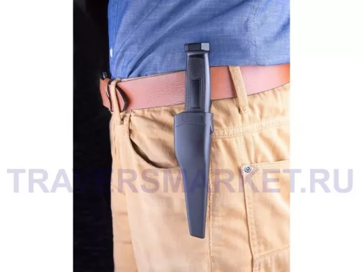 - Нож идет в комплекте с пластиковым чехлом, который удобно крепить к одежде.