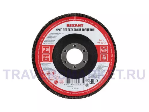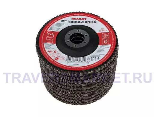 Круг лепестковый торцевой КЛТ 125х22 REXANT применяется с угловыми шлифовальными машинками (болгарка) соответствующего диаметра.