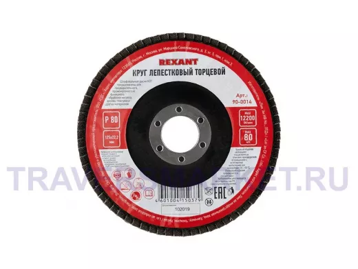Лепестковый круг КЛТ 125х22 REXANT изготовлен на основе шлифовальной шкурки на тканевой основе.