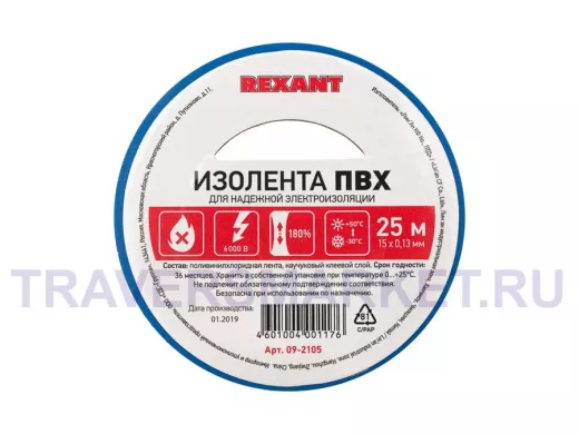Заказать звонокИзолента 15мм х 25метров синяя REXANT