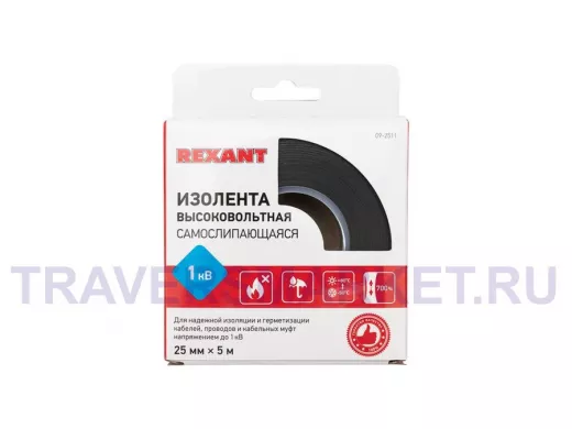 Заказать звонокИзолента 25мм х 5метров высоковольтная самослипающаяся REXANT (до 1кВ)
