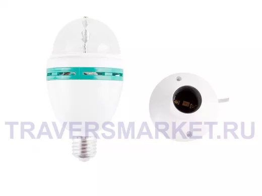 Светодиодная диско-лампа с цоколем E27 — это повод устроить веселую вечеринку прямо у вас дома, не дожидаясь особого повода. Изделие внешне напоминает привычную лампочку, которую можно вкрутить в люстру, бра, торшер или использовать специальную поставку с электрическим кабелем и штепсельной вилкой. Внутри находится моторчик, который приводит в движение купол. Устройство создает эффект светомузыки, отбрасывая разноцветные блики на окружающие предметы. Диско-лампа с тремя светодиодами предназначена для использования в помещениях с умеренной влажностью.