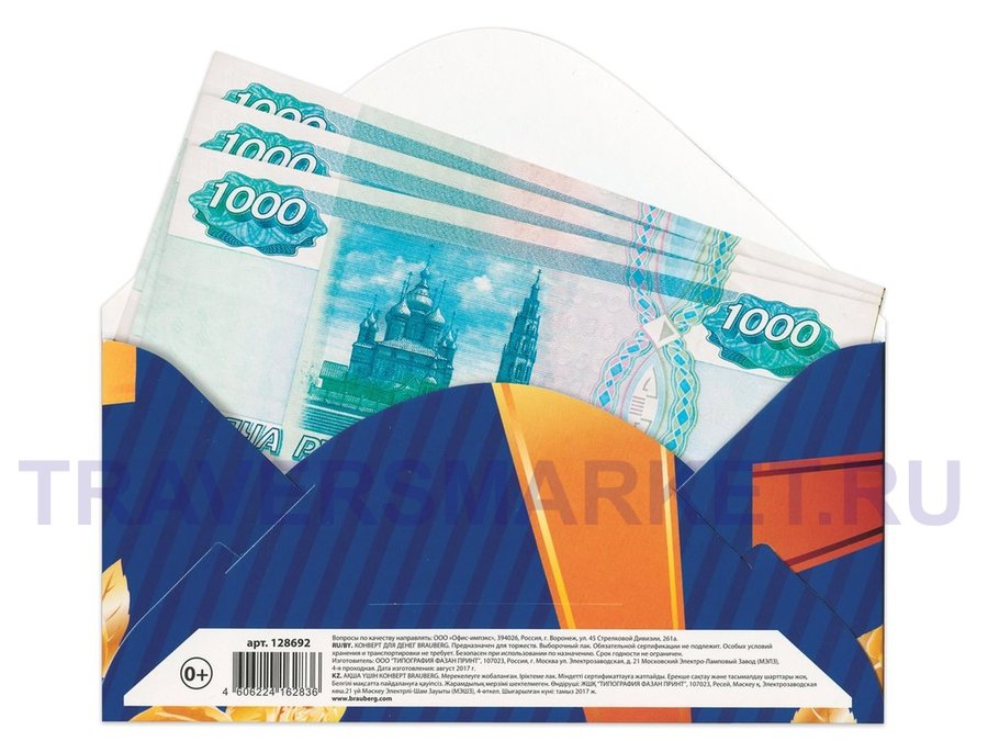 Изготовлен из высококачественного картона плотностью 215 г/м2. Конверт выполнен в сине-золотых тонах с бантом. Размер - 166х82 мм. Не знаете, что подарить? Тогда стоит задуматься об универсальном денежном подарке, который поместится в стильный конверт BRAUBERG. Покупайте товары для торжества в нашем интернет-магазине!