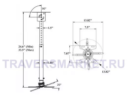 Кронштейн потолочный телескопический наклонно поворотный для проектора NB Т718-2 Белый