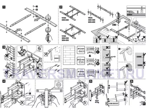 - Крепежные отверстия (VESA): 200х200, 300х300, 400х200, 400х300, 400х400, 600х400 мм