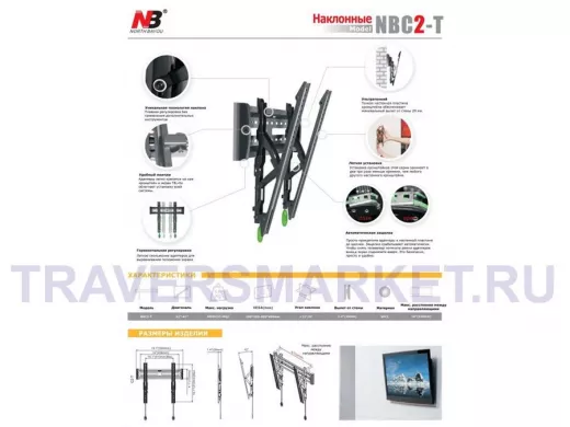 Заказать звонокКронштейн NB C2-T Диагональ монитора: 32-47" до 50кг.Угол наклона: -0/+12VESA: 100x100400x400mm.