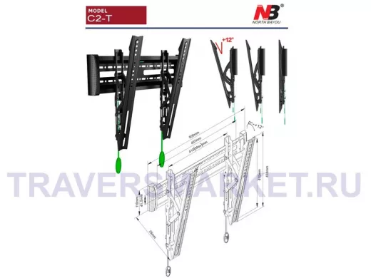 Кронштейн на стену наклонный для телевизора North Bayou NB C2-T Черный