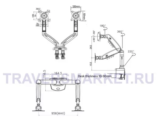 Поворотный настольный кронштейн для двух мониторов