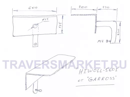 Кронштейн "HIWOLL-5601GR"серый козырёк для видеокамер, 0,2х0,6м, подходит к трубе "HIWOLL-5602GR"