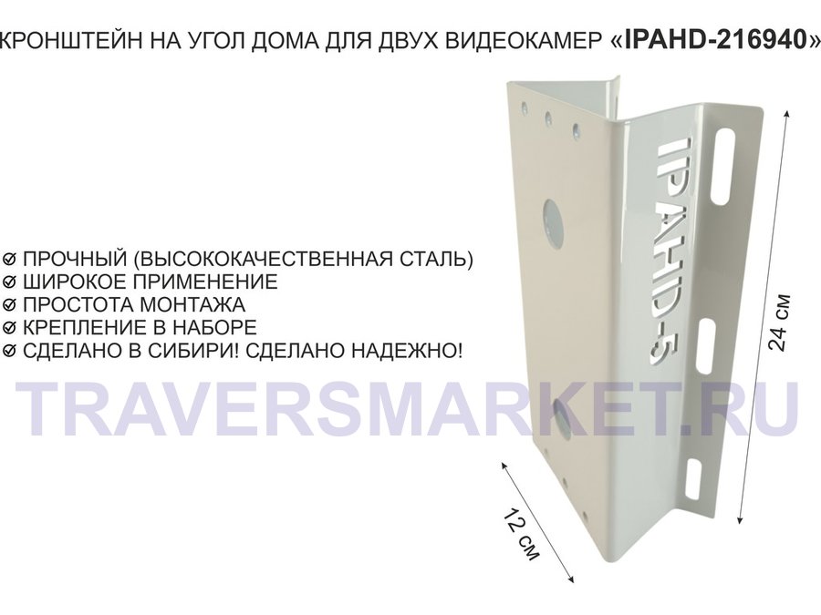 Кронштейн на угол дома для двух камер видеонаблюдения, 2 отверстия "IPAHD5-216942" оцинкован,24х12см
