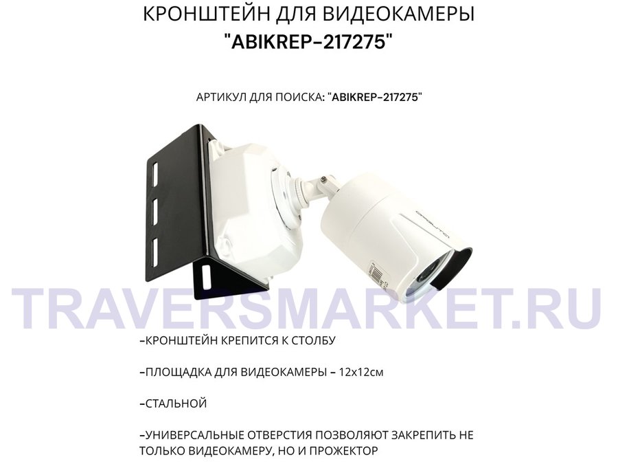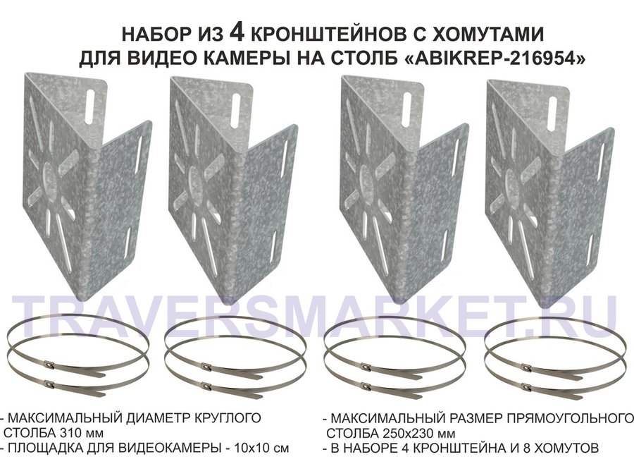 Кронштейн оцинкованный для камеры видеонаблюдения с хомутами на столб "ABIKREP-216979" 24х12см, 2отв