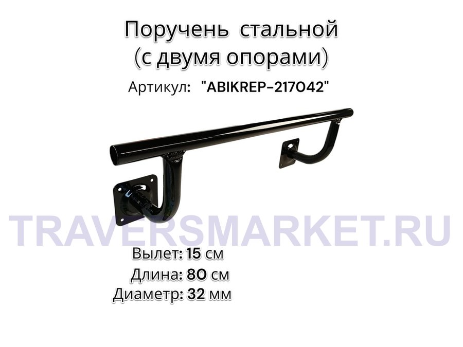 Поручень пристенный для домов снаружи и внутри, ширина 67см высота 25см "ABIKREP-216917" черный,32мм