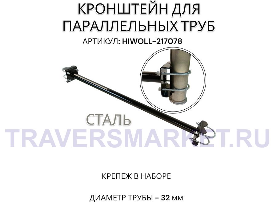 Кронштейн для параллельных труб диаметром от 15 до 51мм длина 100см "HIWOLL-217080" стальной, черный