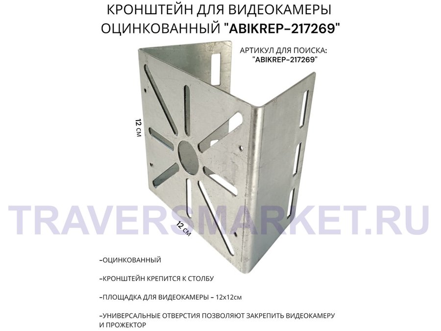 Кронштейн оцинкованный для камеры видеонаблюдения с двумя хомутами на столб "ABIKREP-216978" 24х12см