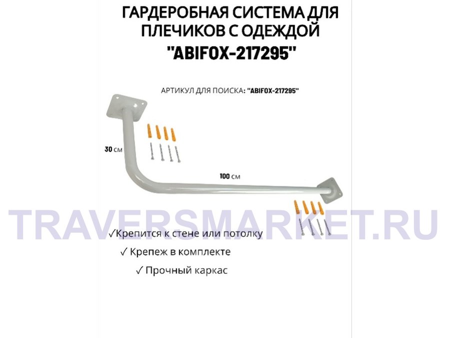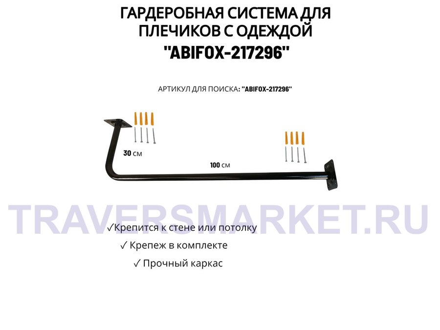 Гардеробная система для плечиков с одеждой, длина 100см, вылет 30см "ABIKFOX-217296" черный,диам32мм