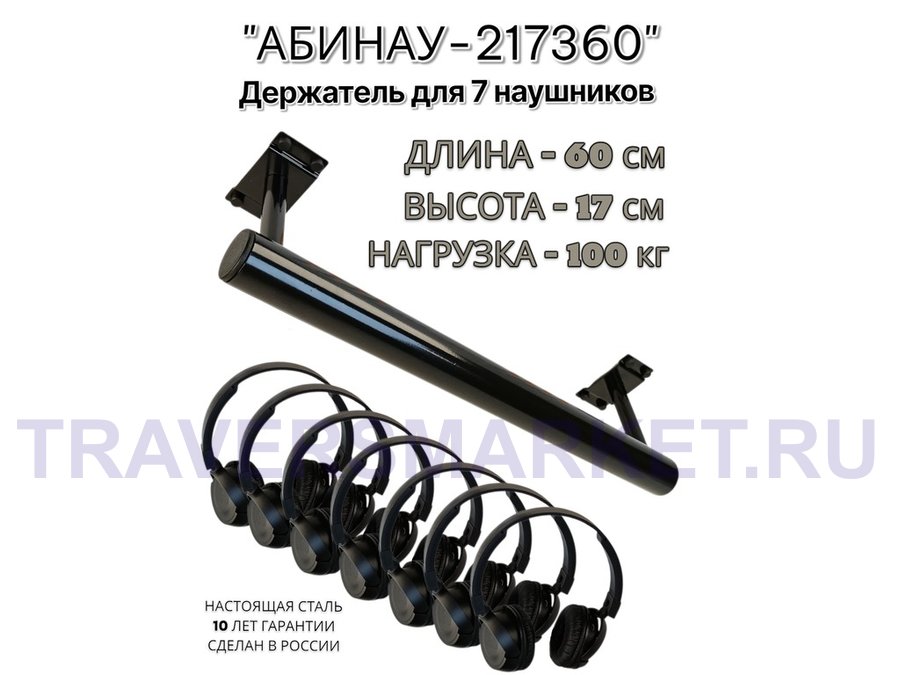 "АБИНАУ-217360" держатель для семи наушников, длина 60, высота 17 см, сталь, под стол,к стене,черный