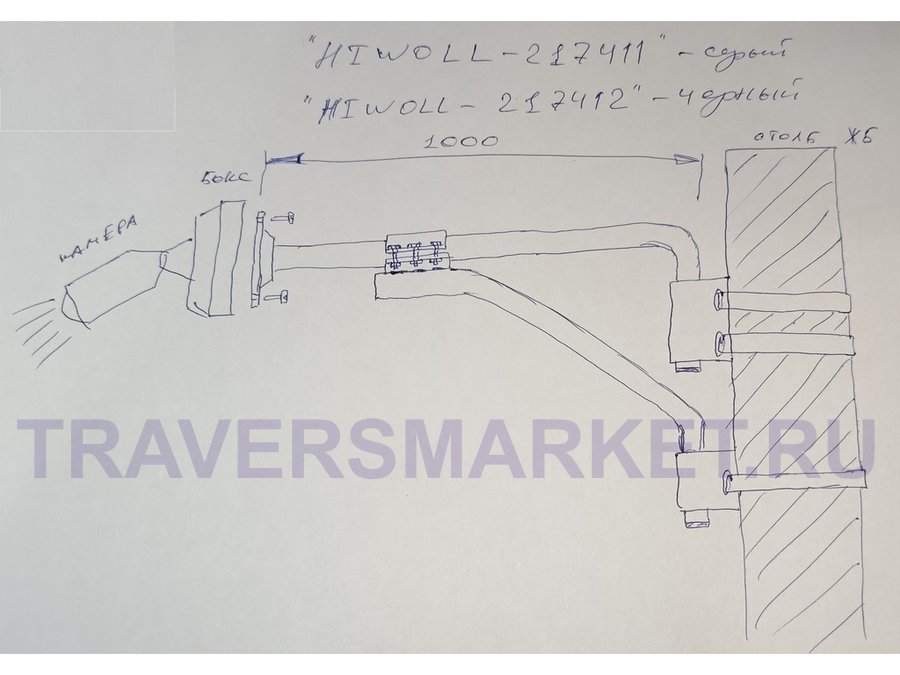 Кронштейн на столб для крепления гермобокса с видеокамерой,вылет 100 см "HIWOLL-217397" черн., сталь